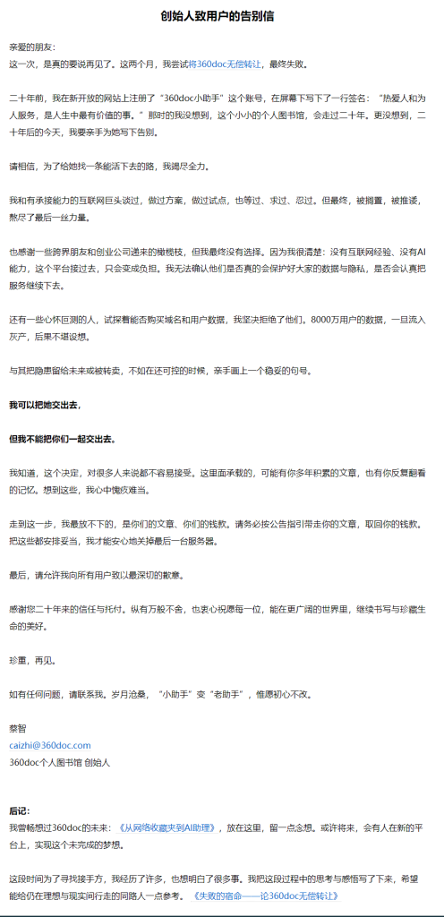 之前360doc说《“360doc个人图书馆”宣布无偿转让》
